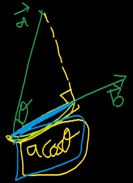 - |a| · |b| · cosθ = ax*bx + ay*by -> 내적을 이용하면 쉽게 각도를 구할수 있다