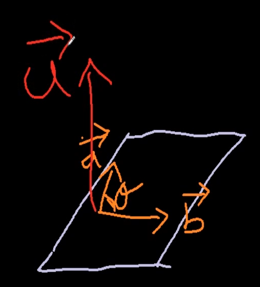 - |a| x |b| · sinθ = a벡터와 b벡터가 있는 평면의 수직인 벡터(법선 벡터)