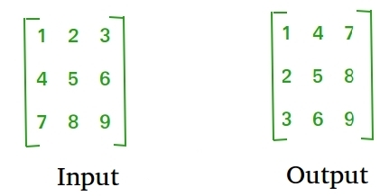 - 대각요소를 기준으로 행과 열이 뒤집힘