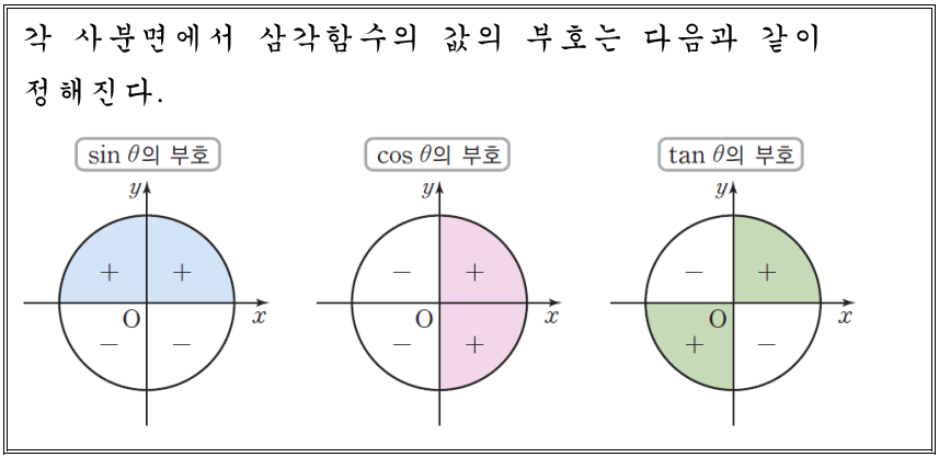 7. 삼각함수의 값의 부호