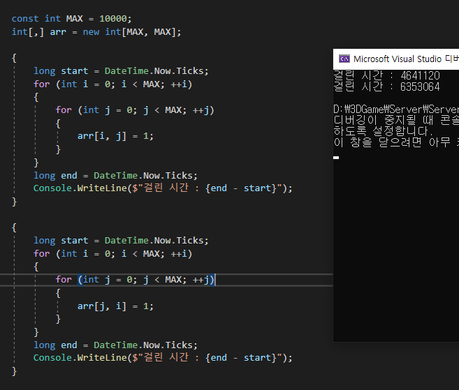 Cache Test - 2차원 배열에서 [0,0][0,1][0,2]를 참조하는 것과 [0,0][1,0][2,0]을 참조하는 시간이 차이가 난다. - 공간적 측면에서 보면 [0,0]을 참조한 순간 Cache는 [0,?]을 우선으로 사용할 것이라고 가정했기 때문.