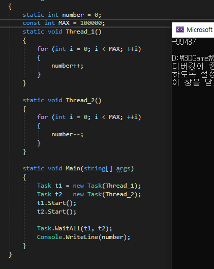 MultiThread 동작 시 하나의 변수에 대해 2개의 Thread가 값을 변경할 경우 예상과 다른 결과가 나올 수 있다.